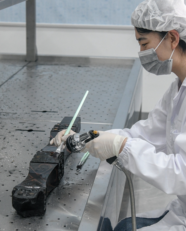 A staff member maintains a lacquerware unearthed from the Wuwangdun tomb discovered in Huainan, east China's Anhui Province. [National Cultural Heritage Administration/Handout via Xinhua]
