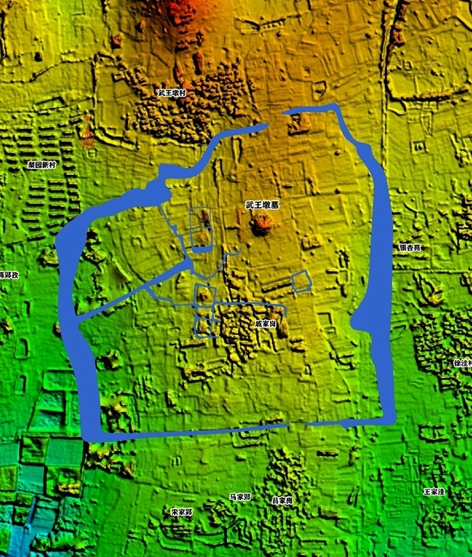 This picture shows a layout of the Wuwangdun tomb discovered in Huainan, east China's Anhui Province. [Anhui provincial cultural relics and archaeology research institute/Handout via Xinhua]
