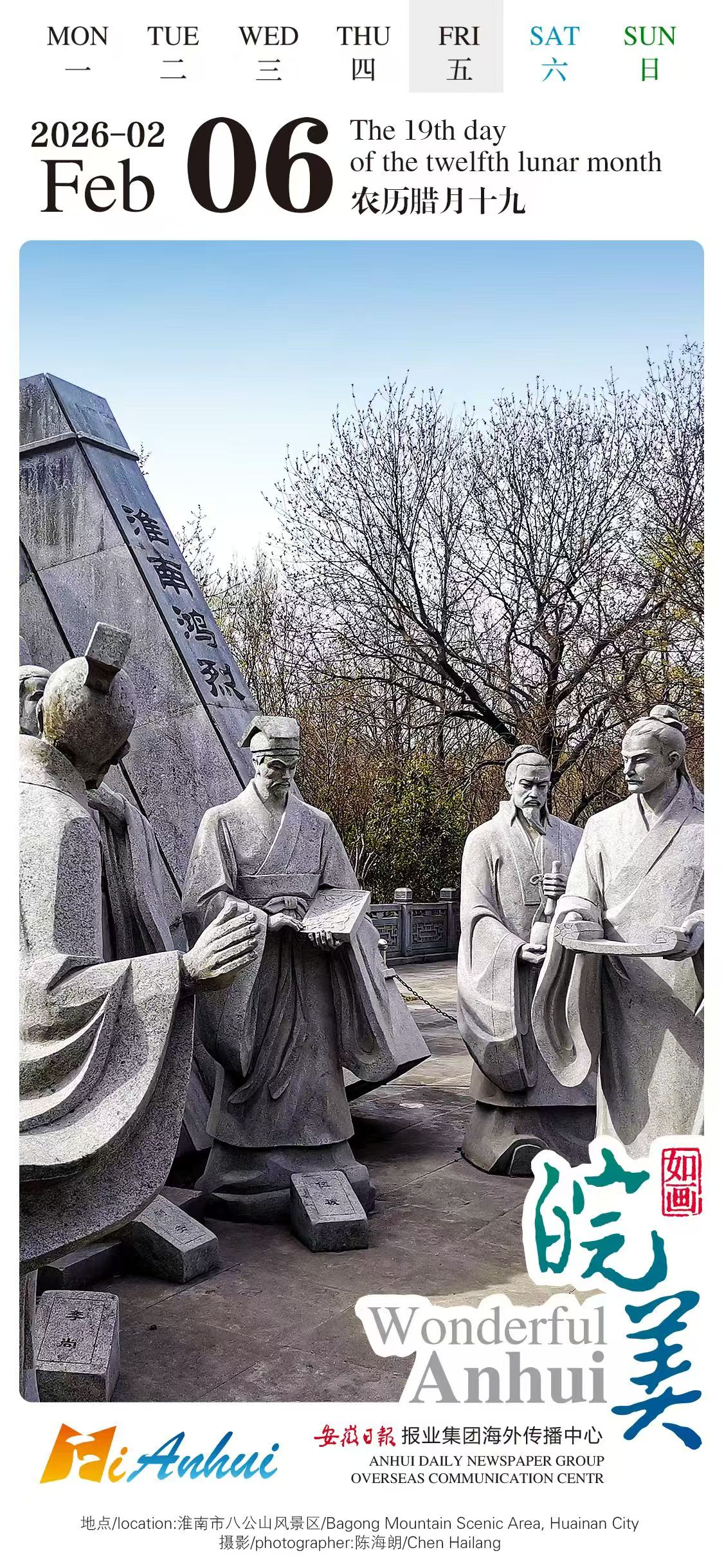 Follow the "Wonderful Anhui" English calendar on a virtual tour to Bagong Mountain Scenic Area in Huainan City, Anhui. See the sculptures of ancient scholars, join their dialogue and feel ancient wisdom amidst beautiful scenery.