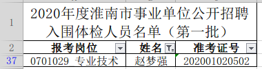 2020年度淮南市事业单位公开招聘入围体检人员名单(第一批)
