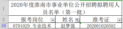 2020年度淮南市事业单位公开招聘拟聘用人员名单公示(第一批)