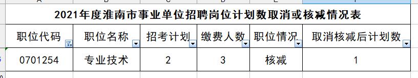 2021年度淮南市事业单位公开招聘岗位计划数取消或核减情况公告