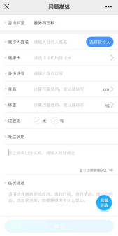 点击【在线问诊】,选择医生后,按要求填写相关信息,等待医生接诊
