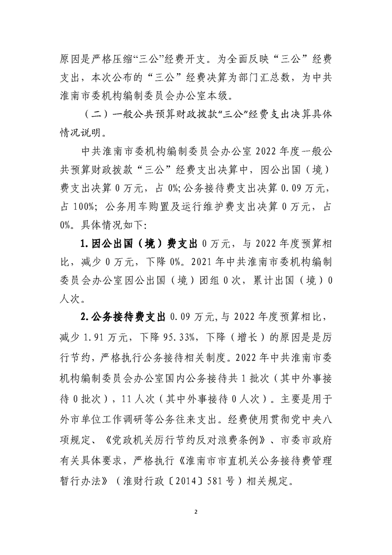 中共淮南市委机构编制委员会办公室2022年度一般公共预算财政拨款“三公”经费支出决算情况说明