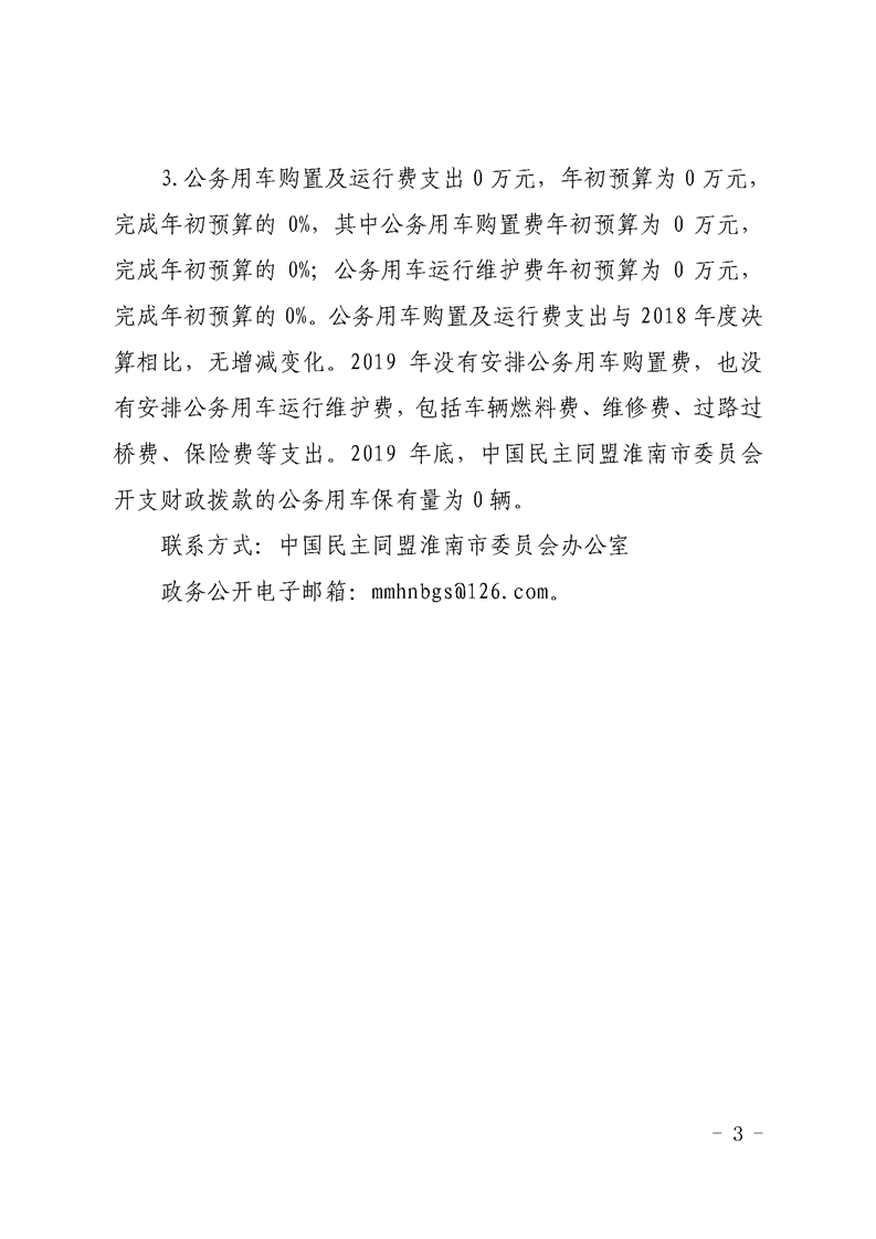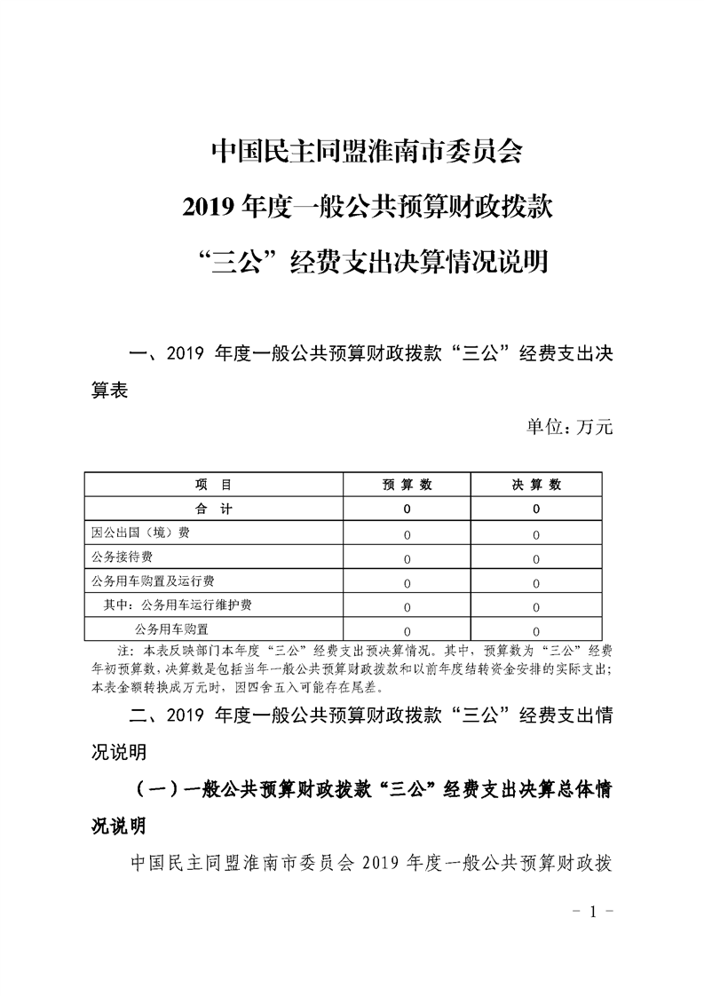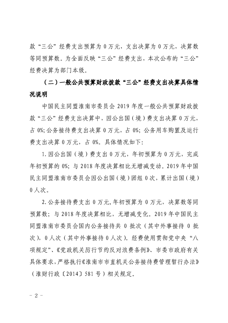 中国民主同盟淮南市委员会2019年度一般公共预算财政拨款“三公”经费支出决算情况说明