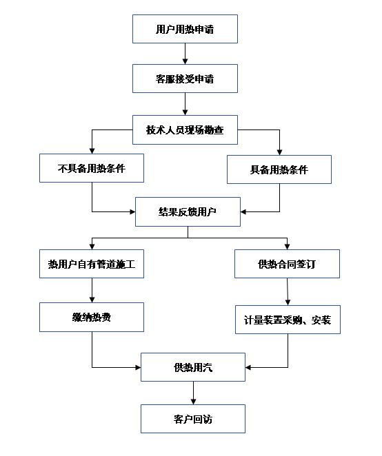 中润热电客服中心受理热用户申请后,在3个工作日内,组织公司技术人员进行实地勘测,在5个工作日内,将申请结果告知热用户。