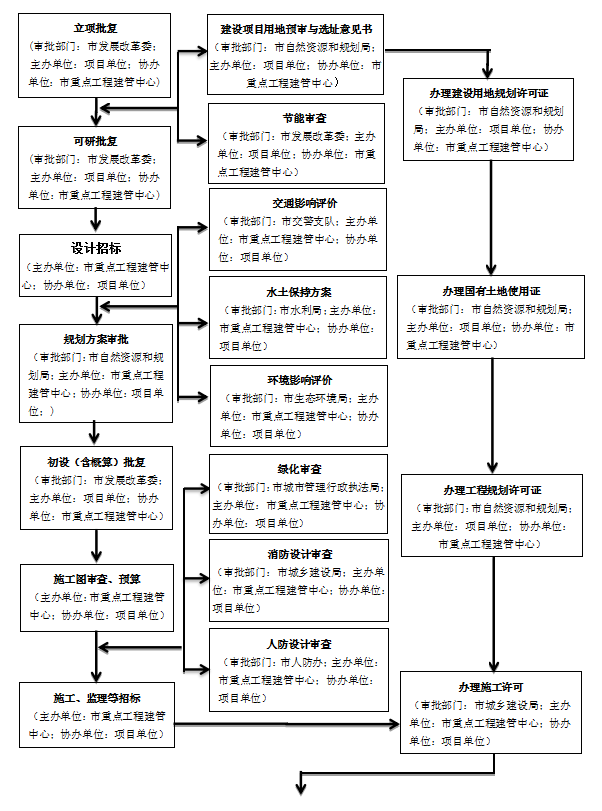市重点工程建管中心负责同步编制交通影响评价、水土保持报告、环境影响评价等相关文件,报各行业主管部门审批,项目单位配合。
