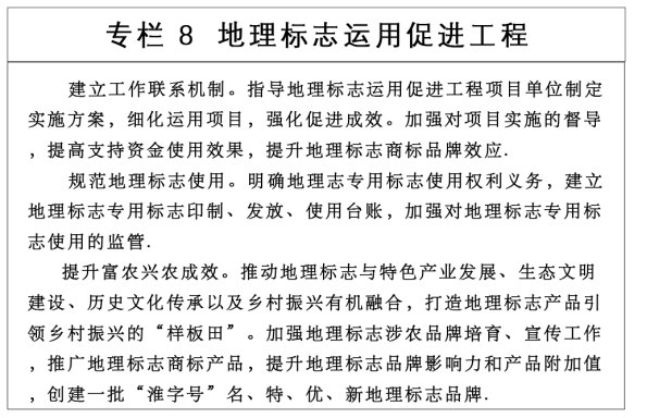 推动产业创新发展。加强专利密集型产业培育,探索开展我 市专利密集型产业增加值统计、发布与监测。开展专业商标品牌基地建设,实施乡村知识产权强基工程,推动地理标志运用促进 工程融入乡村振兴战略实施,开展“知识产权下乡”行动,推动 知识产权咨询、代理、法律等服务向乡村延伸。加强涉农知识产 权运用,推进新品种惠农,制定具有地域特色的地理标志产品标 准 培育一批富农兴农“金字招牌”。提升林业科技成果转化应用水平,加强优秀林业植物新品种培育和产业化,加快培育具有 自主知识产权的优良品种,培育和转化一批优质林草新品种,助 力乡村振兴。建立地理标志产品产值统计制度。(市科技局,市经济和信息化局,市商务局,市农业农村局,市粮食和物资储备局 市市场监管局,市林业局等按职责分工负责)推动区域协调发展。实施知识产权强市工程。推动知识产权在市高新技术产业开发区大数据、高端装备制造,市经济技术开 发区先进装备制造、精细医药化工、汽车制造,潘集经济开发区(现代煤化工产业园)煤基石化、替代燃料、精细化工及化工新材料、基础化工,寿县经济开发区(新桥国际产业园、寿蜀现代产业园)智能装备制造,凤台经济开发区机械制造、新型建材, 毛集经济开发区农副产品深加工、高端装备制造等方面的知识产权创造运用保护,全面支撑我市经济社会高质量发展。