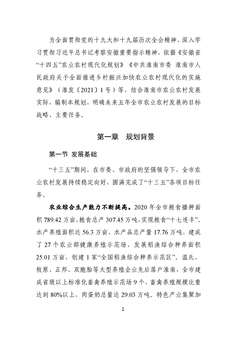 【“十四五”规划】《淮南市“十四五”农业农村现代化规划的通知》