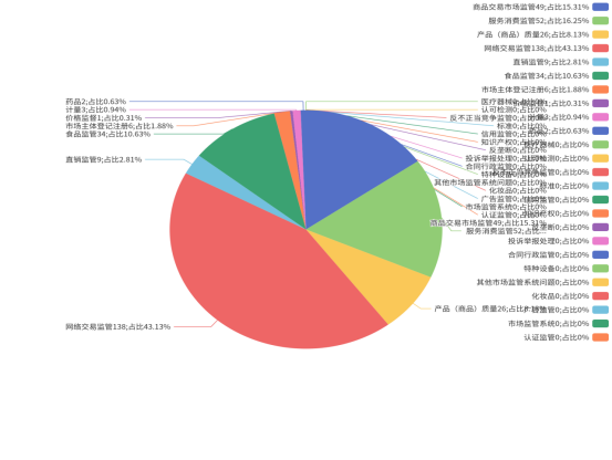 从平台三大数据来源来看,话务接收1091件,占比51.66%;群众互联网填写703件,占比33.29%;监管人员录入(邮箱、来函、其他部门转办等)318件,占比15.06%;
