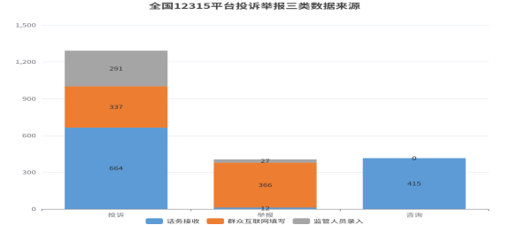 从平台三大数据来源来看,话务接收664件,占比51.39%;群众互联网填写337件,占比26.08%;监管人员录入(邮箱、来函、其他部门转办等)291件,占比22.52%;