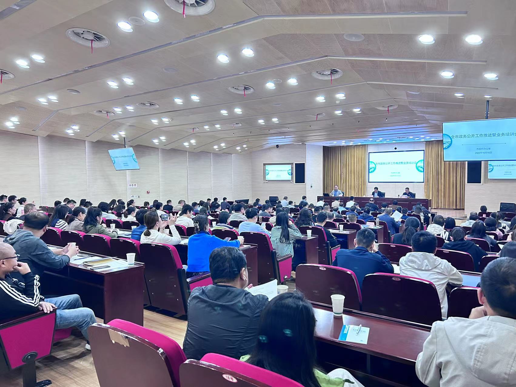 省政务公开办就我市当前政务公开工作推进总体情况进行了点评;就政务公开工作的理论和实践、工作推进中存在的具体问题和下步重点工作的要求等进行了系统培训。