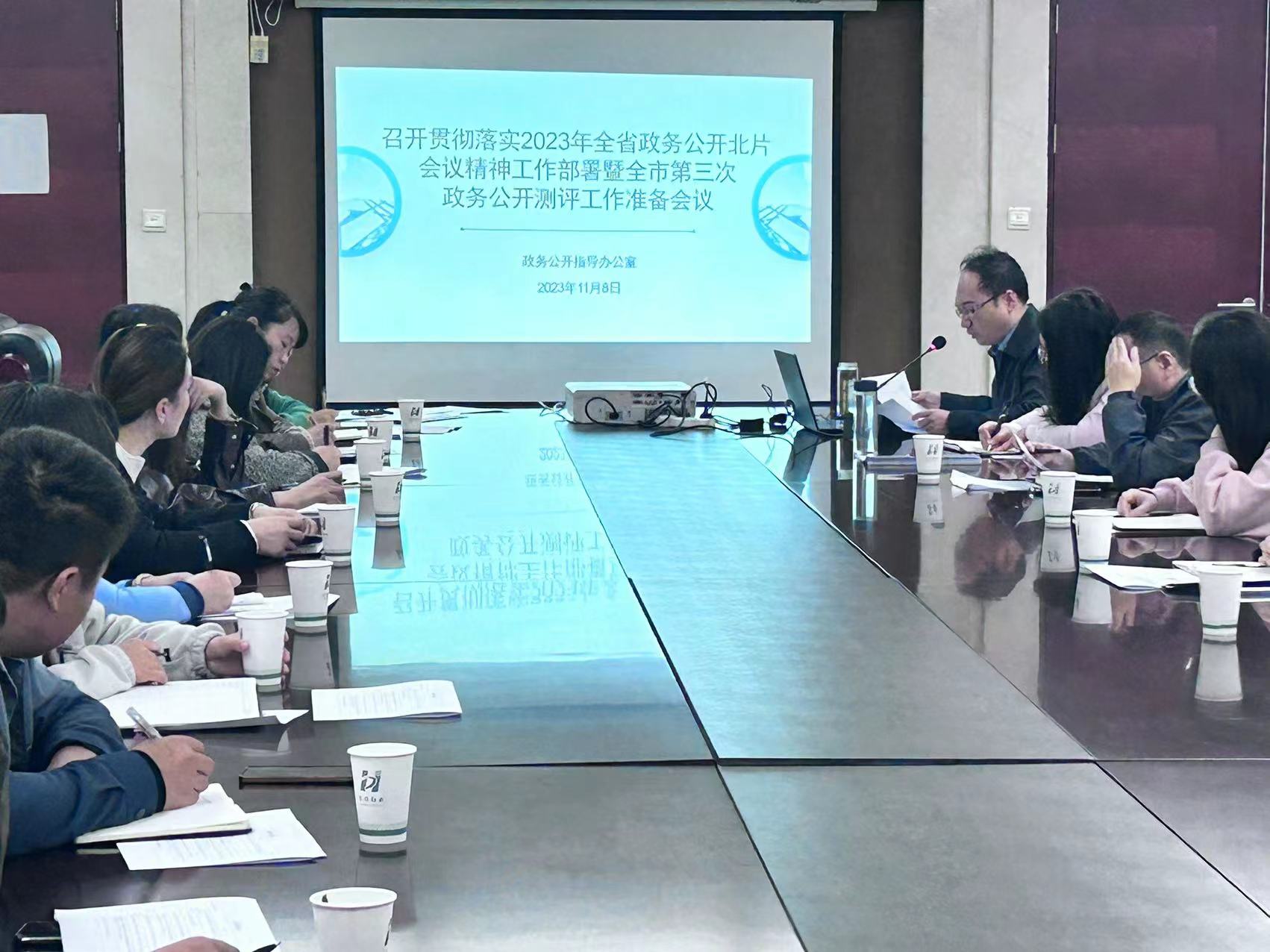 11月8日上午,市政府办公室在市政务中心A座6楼5号会议室组织召开贯彻落实2023年全省政务公开北片会议精神工作部署暨全市第三次政务公开测评工作准备会议。各县区政府、市直各单位业务具办人员共计50余人参加了会议。