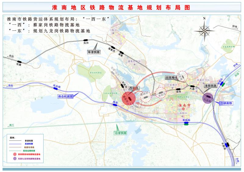 针对铁路物流基地规划采取“新布点、并改扩、转关停”发展对策,充分利用既有铁路资源,打造层次分明、功能互补、覆盖全面的城市铁路货运布局。整合转移望峰岗、淮南西站、田家庵站货场功能至蔡家岗货场;改扩建潘集、凤台、张集站货场的功能和规模。