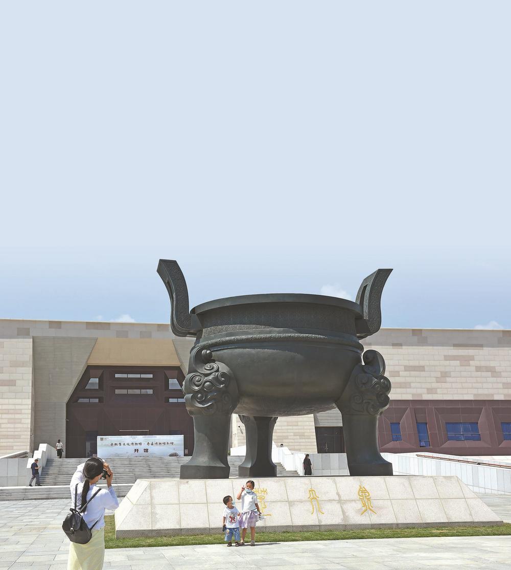 ▲ 6月11日,游客在“楚大鼎”前参观拍照。 特约摄影 陈彬 摄