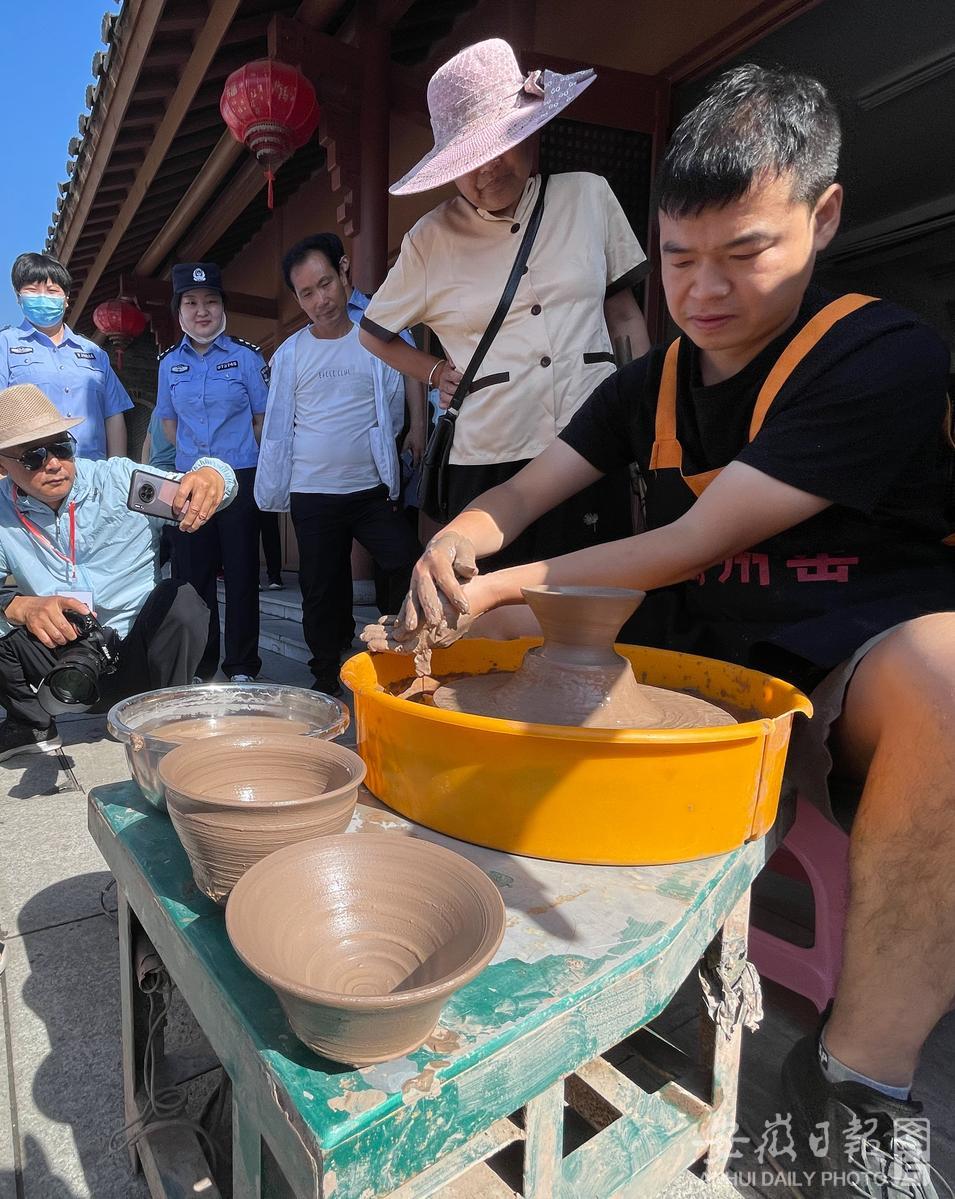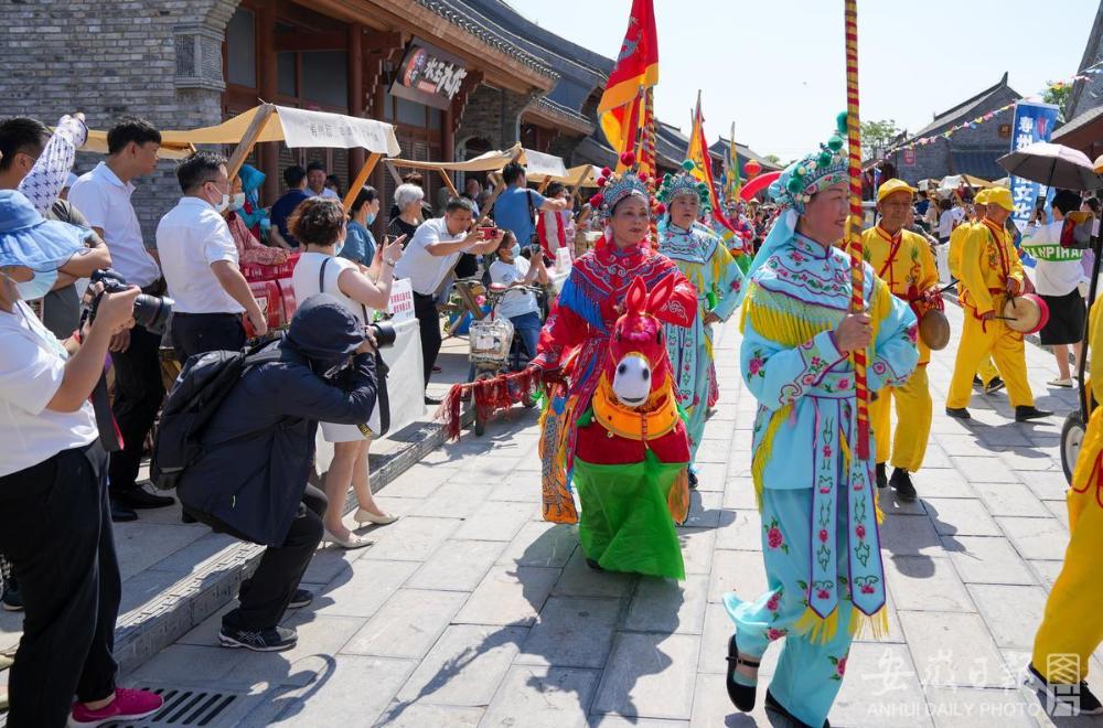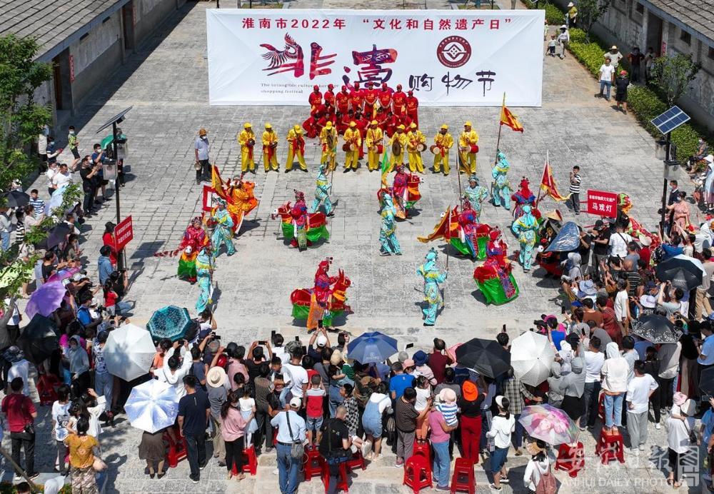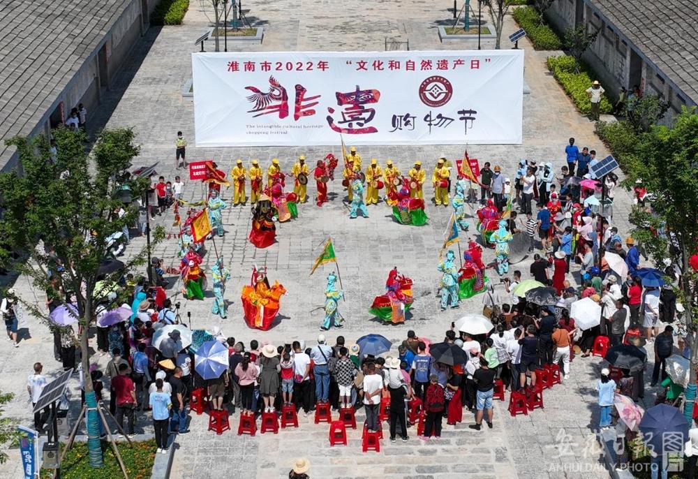 6月11日,淮南市文化和旅游局在寿县报恩寺街举办了2022年 “文化和自然遗产日”非遗宣传展示暨“非遗购物节” 活动,在疫情常态化防控的同时,市民观赏“非遗”亨受美食购物带来的快乐。 当日是第17个“文化和自然遗产日”,非遗展演有花鼓灯、马戏灯、夏集狮子灯、寿州锣鼓、寿州大鼓、抬阁肘阁、邱氏民间吹打乐。活动现场非遗传人展示了豆腐制作技艺、大救驾制作工艺、淮南牛肉汤制作技艺、凤台小磨芝麻油制作技艺等,特色非遗饮食项目以及本地特色旅游产品,让广大市民近距离品尝“非遗味道”。 安徽日报记者 李博 安徽日报通讯员 赵阳 摄