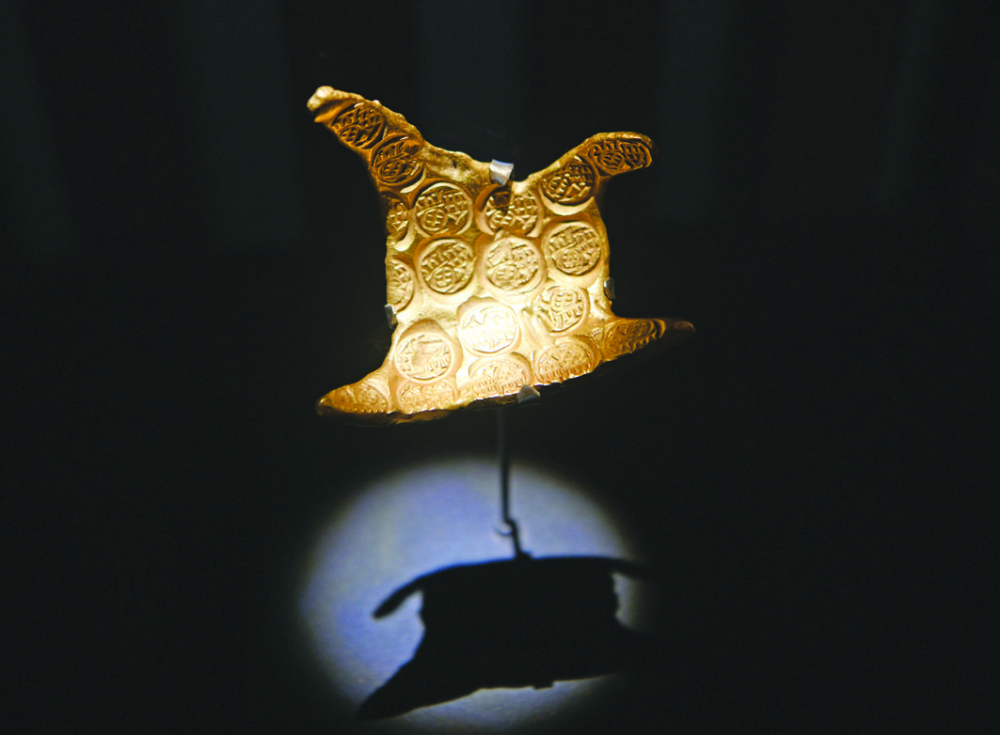 安徽楚文化博物馆位于安徽省淮南市寿县,于2022年6月正式开馆,馆藏国家一级文物230件(套),三级以上文物2200余件(套),可移动文物和标本1万余件(套),该馆也是全国收藏楚金币数量最多的博物馆。楚金币是战国时期楚国的黄金货币,主要用于大宗商贸活动的兑值。图为安徽楚文化博物馆内展出的楚金币。