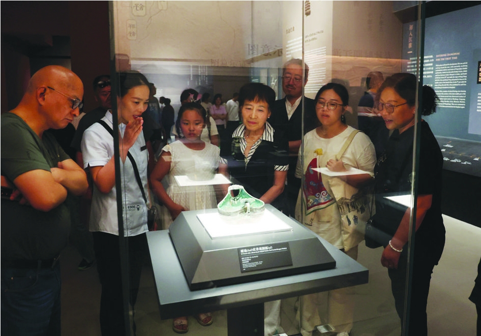 安徽楚文化博物馆的讲解员向观众介绍馆藏文物。进入暑期,该博物馆迎来参观高峰,每天有来自全国各地超3000名参观者,进场欣赏精美展品、感受千年历史文化。
