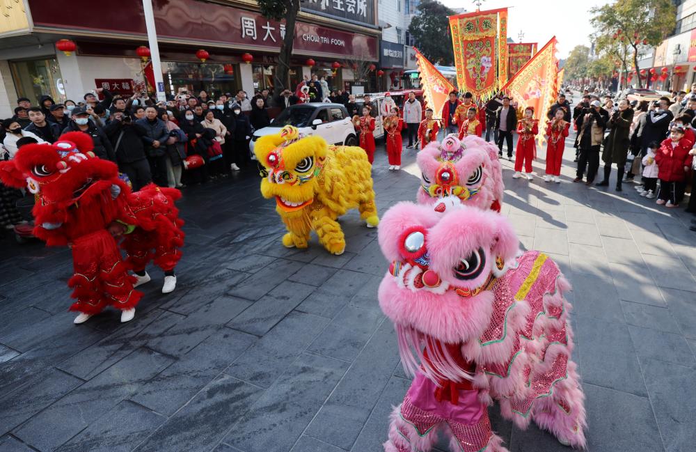 2024年,“春节”被列入人类非物质文化遗产代表作品名录。2025年,乙巳蛇年“非遗过大年”的概念更加火爆。在国家级历史文化名城寿县,古城内外处处洋溢着欢庆气息。从除夕到年初七,寿县陆续推出春节系列文化活动,有除夕撞钟祈福、寿州古城迎春礼暨蛇年拜年祝寿大会、楚都迎宾礼、龙狮踩街大巡游、新春城墙光影秀、水上“非遗”火秀、全民迎财神蛇年戏曲电音狂欢夜,以及“非遗”项目展演和“淝水之战”等沉浸式演艺等活动,尽显“非遗”传承、国粹之美。本版图片为1月30日大年初二,寿县古城欢庆春节的热闹景象。