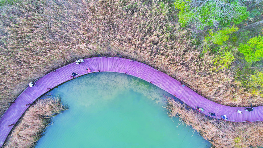 位于舜耕山脚下的大通湿地公园,是“淮南九大采煤沉陷区”综合治理项目的重要组成部分,经修复绿化现已成为市民游乐休闲的好去处。初冬季节的大通湿地公园,树叶五彩斑斓,水面碧镜,游人如梭,好一派人与自然和谐共生的美好景象。