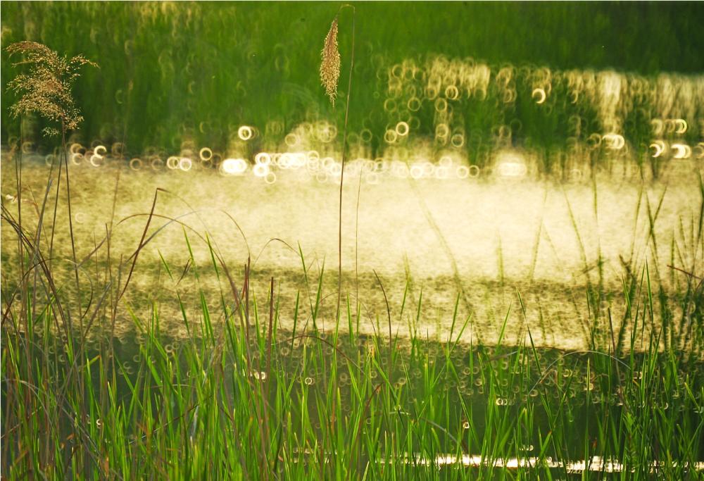 泊露清风吹碧浪,熏阳一片曜池塘。