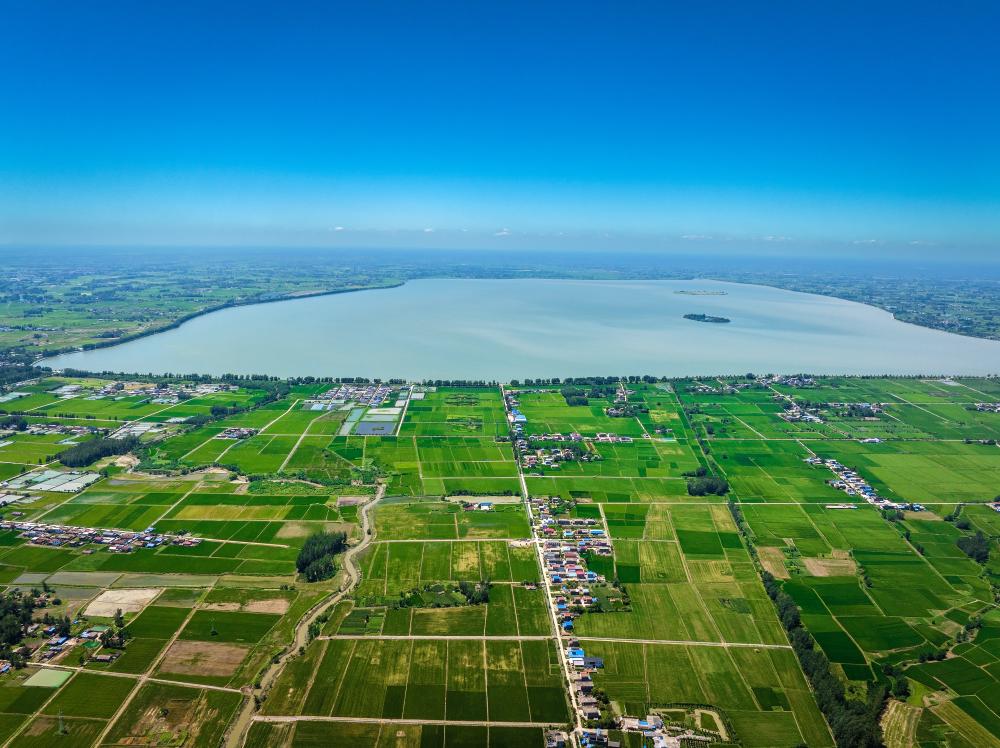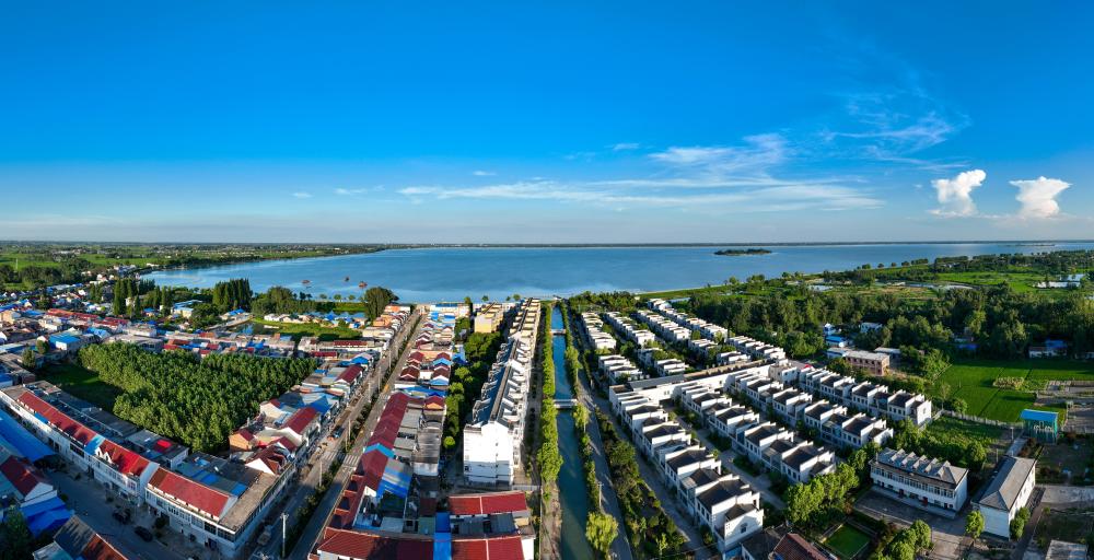 无人机航拍安丰塘稻田画栩栩如生,艺术感十足。