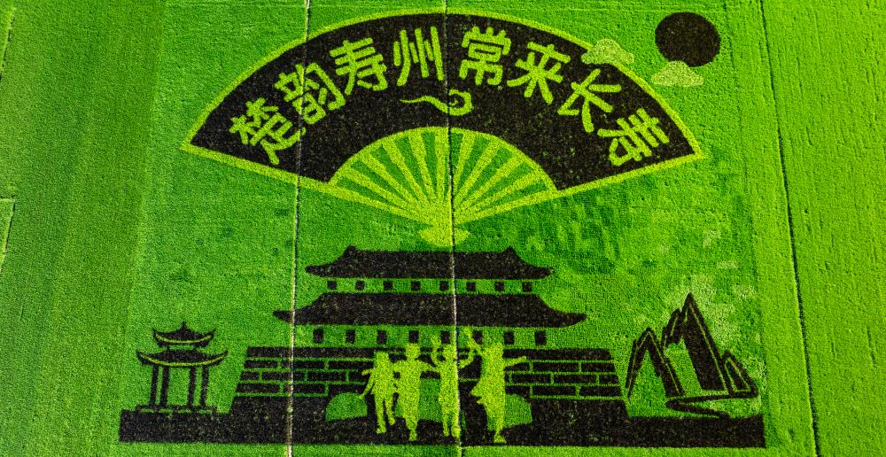 从2016年始,寿县安丰塘镇引进创意农业稻田画,一年一主题,年年出新意,助推了乡村旅游的发展,提高了安丰塘镇的知名度和美誉度,促进了乡村振兴和农民增收。据寿县诚丰农机专业合作社负责人顾广银介绍,今年共种植优质水稻2800亩,目前长势良好,现正处在抽穗灌浆阶段。
