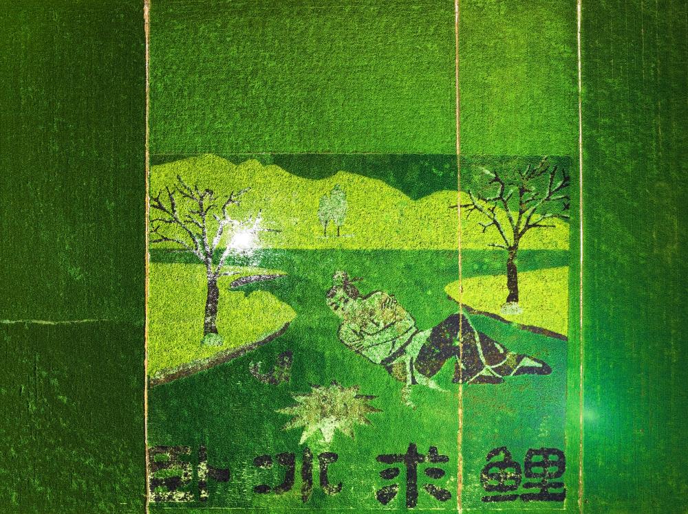以“卧水求鲤”成语为主题的稻田画,彰显成语典故之城的魅力。