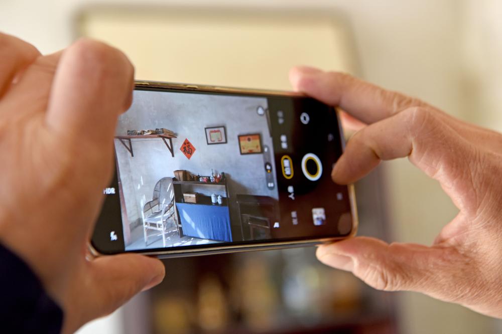 2月10日,游客在《六姊妹》拍摄地打卡拍照,记录生活中的老物件。