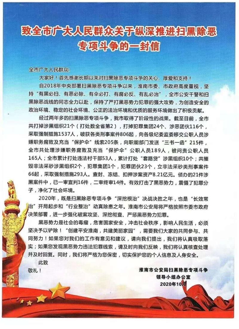 致全市广大人民群众关于纵深推进扫黑除恶专项斗争的一封信