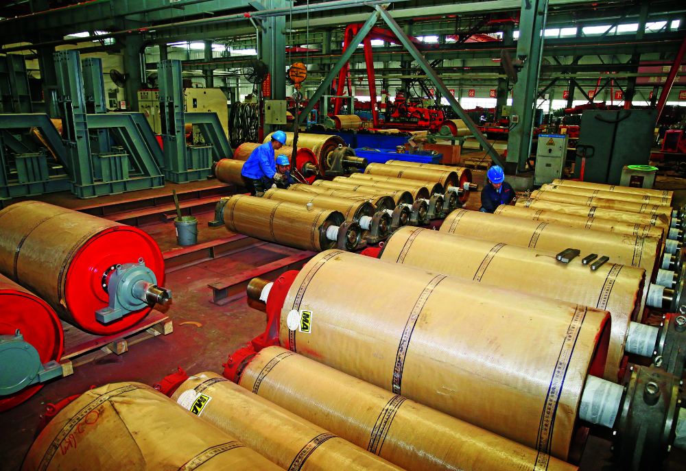 4月17日,凯盛重工有限公司工人正在生产各类掘进、高效输送等装备。进入二季度,凯盛重工紧盯重点发展目标,争分夺秒抢进度,马力全开抓生产。目前,掘锚机等高端掘进装备实现多项关键零部件自主可控,长距离大运量带式输送机保质保效完成阶段性交货任务,有力推动了企业高质量发展。