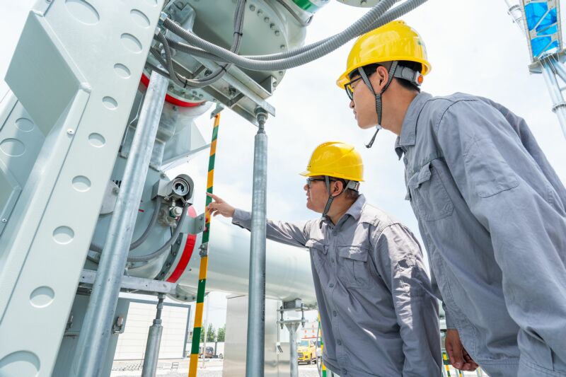 图二:淮南潘集供电公司员工在110千伏泥河变开展设备验收。