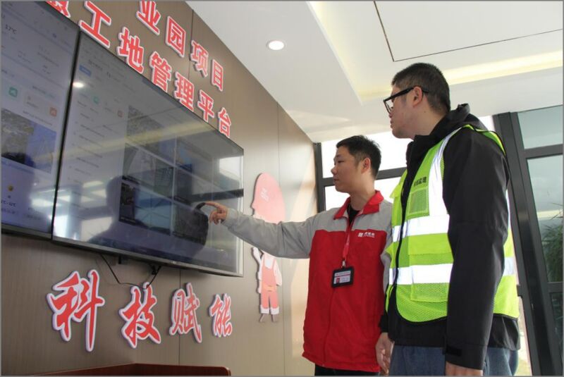 在项目部智慧工地管理平台,记者看到,大屏上清晰显示“今日考勤数345人”,18个在线摄像头实时查看各重点作业面施工情况。施工方现场负责人告诉记者:“施工人数最多时达到460人,现场配备6台塔吊、4台物料提升机,并与专业机械租赁单位签订24小时运转协议,保障垂直运输需求。”