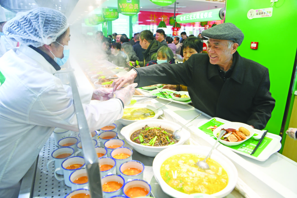 图为寿县寿春镇宾阳社区老人在老年食堂内享受暖心餐。