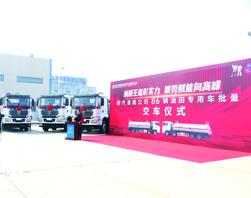 2月26日上午,陕汽淮南公司86辆油田专用车批量交付仪式在公司厂区举行,标志着该公司产品产销实现新春“开门红”。