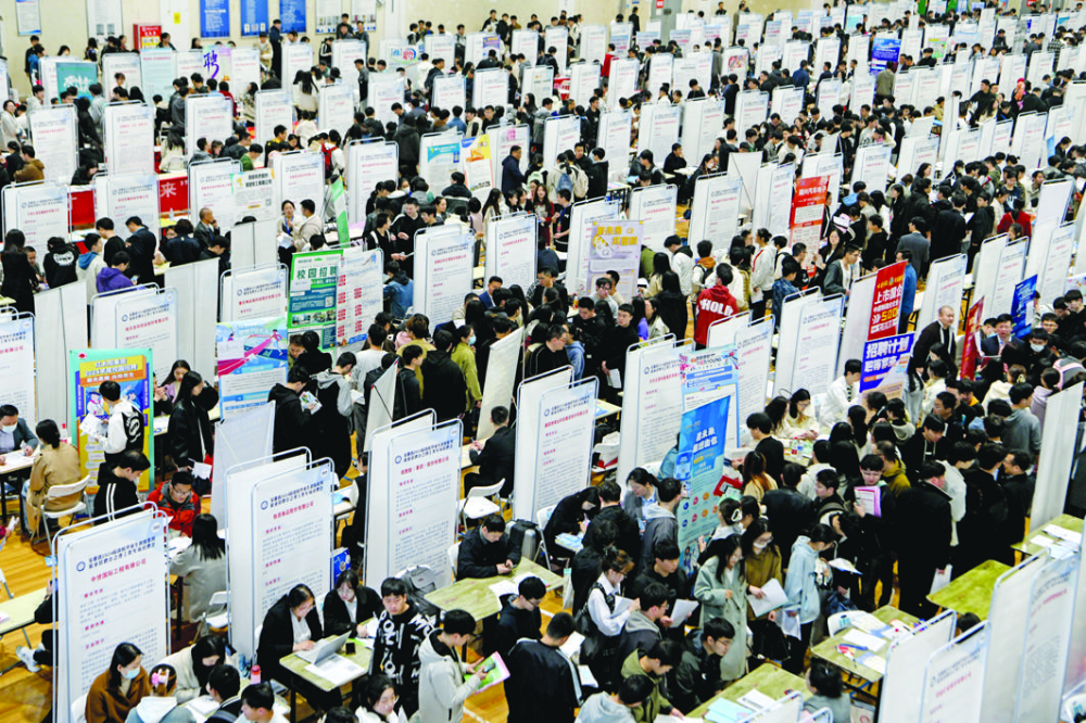 3月23日,安徽省2024届高校毕业生省级系列就业招聘会之理工类专场招聘会在安徽理工大学体育馆举行,来自全国各地近400家招聘单位提供就业岗位13872个。其中,合肥、湖州、镇江等9个地市人社部门组织当地优质企业组团参加校园招聘会。图为招聘会现场。