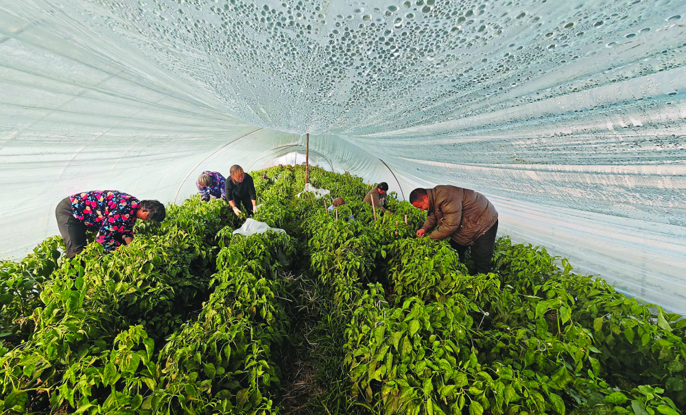 12月25日,毛集实验区焦岗湖镇穆台村合发种植合作社蔬菜基地大棚内,农民在采收青椒。入冬以来,毛集实验区积极做好冬季蔬菜生产工作,引导农民抢抓农时采收蔬菜,及时上市销售,保障冬季蔬菜市场供应。