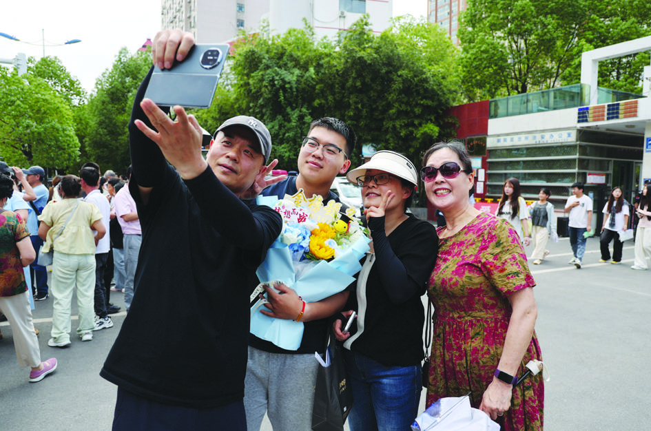 6月9日下午,历时三天的2025年全国高考顺利结束,考生们迈出考场,以蓬勃朝气迎接人生崭新阶段。图一、考生们轻松走出龙湖中学考点校门。图二、考生与父母亲友快乐合影纪念。