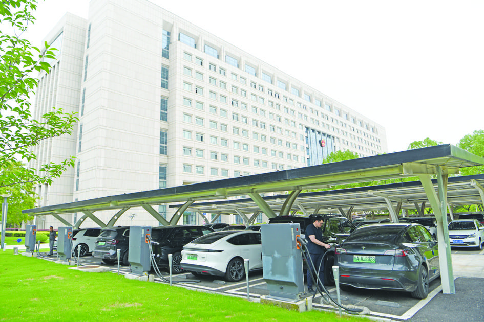 今年全国节能宣传周为6月23日至29日,活动主题是“节能增效,焕‘新’引领”。近年来,我市在节约型机关建设中,对政务中心停车场、垃圾回收设备、中央空调系统、照明系统、给排水系统进行节能智能改造,倡导绿色低碳发展。图为市政务中心停车场一名工作人员在光伏车棚下为新能源汽车扫码充电。