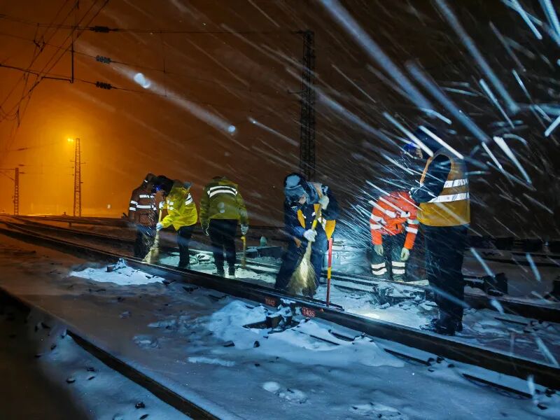铁路部门:扫雪除冰送温暖 守护旅客平安路