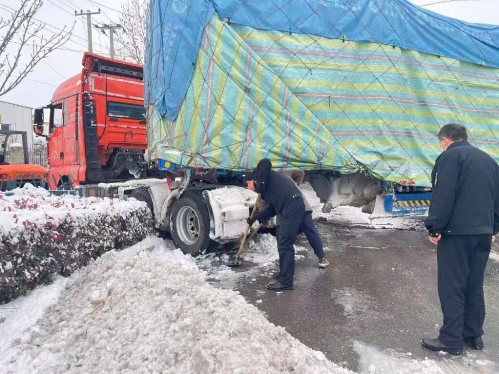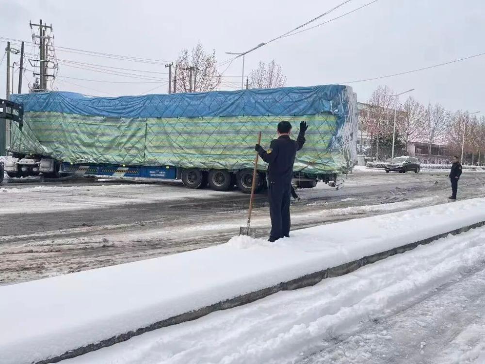 发现情况后,执法人员立即开启应急处置模式,一方面在货车后方安全距离设置警示标志,安排专人指挥疏导过往车辆减速慢行、谨慎绕行,防止发生次生交通事故;另一方面迅速上前,积极协助、指导受困货车司机开展自救。执法人员拿出随车携带的除雪锹等工具,全力清理货车轮胎周边的积雪和结冰,徒手搬开阻碍车辆行驶的石块。经过半个多小时的多方共同努力,受困货车最终成功驶离雪坑。执法人员还对货车司机进行了安全提醒,叮嘱其恶劣天气下谨慎驾驶。道路通行能力迅速恢复,交通安全隐患被彻底排除。