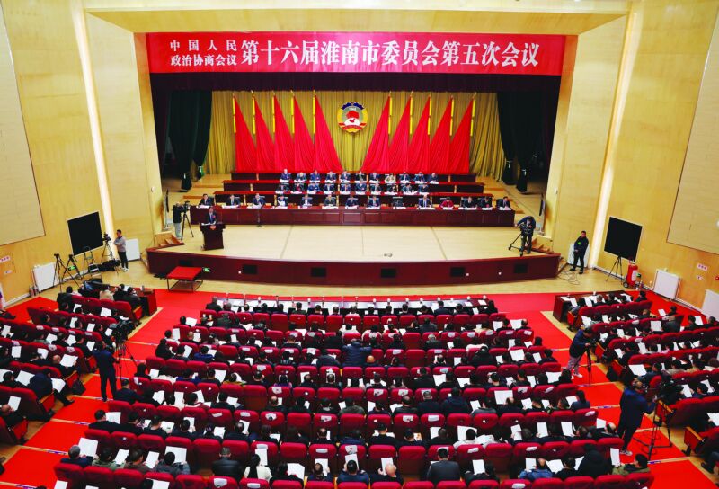 1月26日上午,中国人民政治协商会议第十六届淮南市委员会第五次会议在市政务中心召开。 (记者 张越 摄)