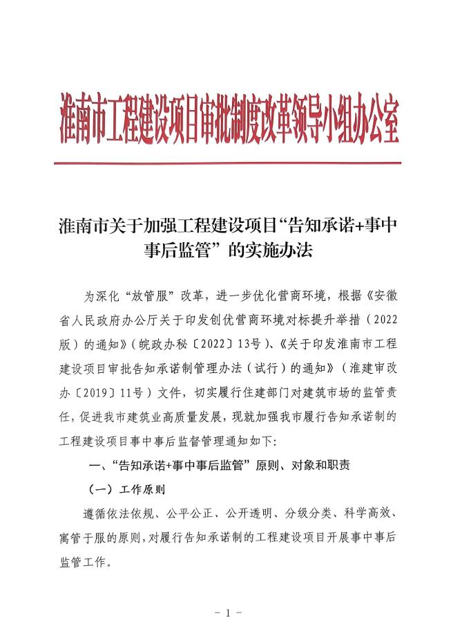 【政策文件】淮南市关于加强工程建设项目“告知承诺+事中事后监管”的实施办法