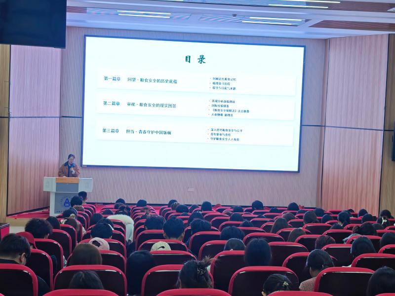 活动中,宣讲人员围绕粮食安全历史底蕴、现实图景以及青年的使命责任,结合典型案例深入讲解粮食生产、储备、流通的现状与保障措施,重点宣传了《粮食安全保障法》的重要意义,详细介绍了法律对压实粮食安全责任、守住耕地命根子、完善储备体系、推动节约风尚以及科技创新支撑等方面的具体规定,使学生对法律在保障国家粮食安全中的战略意义有了深入认识。宣讲过程中,学生们认真聆听、积极互动,纷纷表示粮食安全不仅关乎国家发展大局,也与每个人的日常生活息息相关,是青年一代应承担的重要责任。