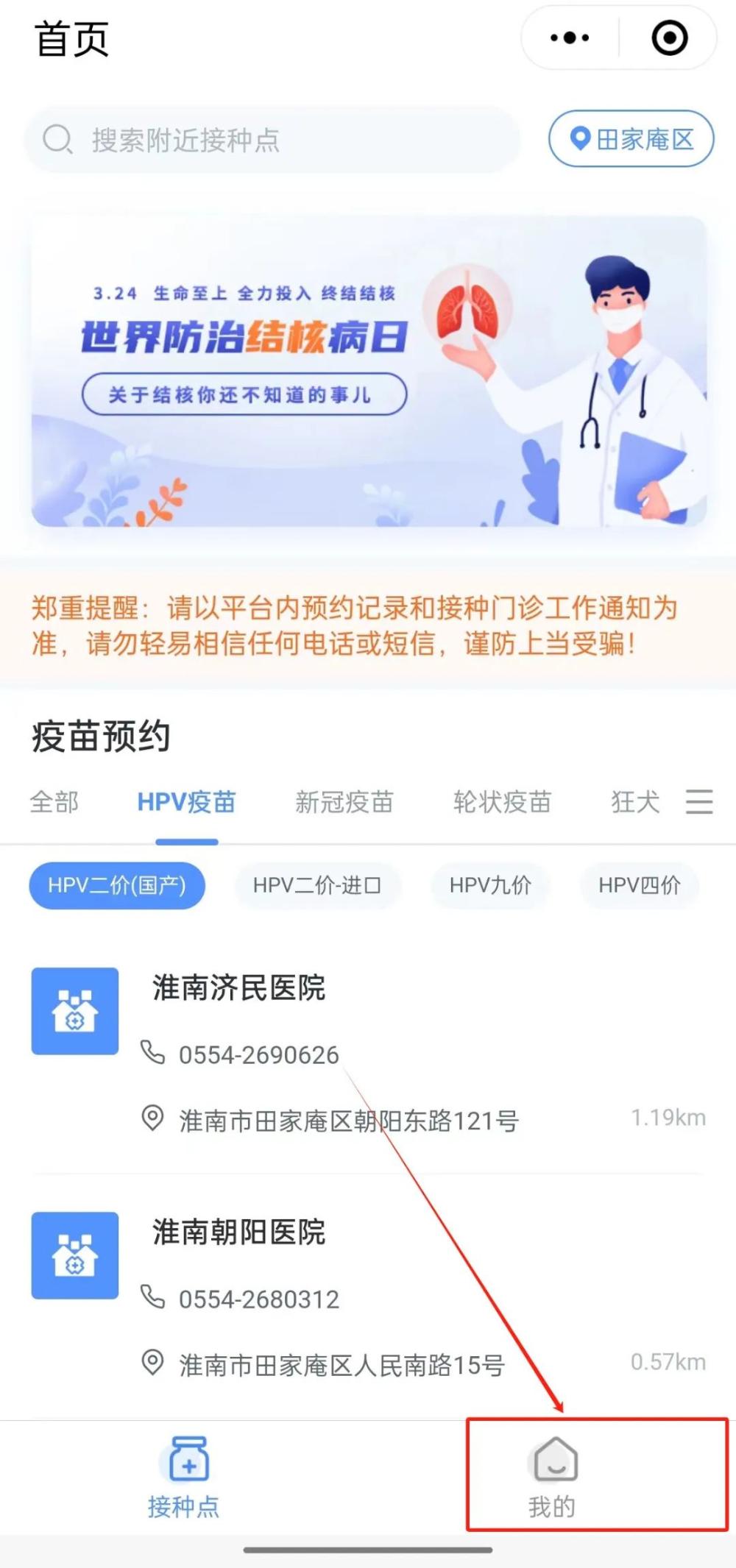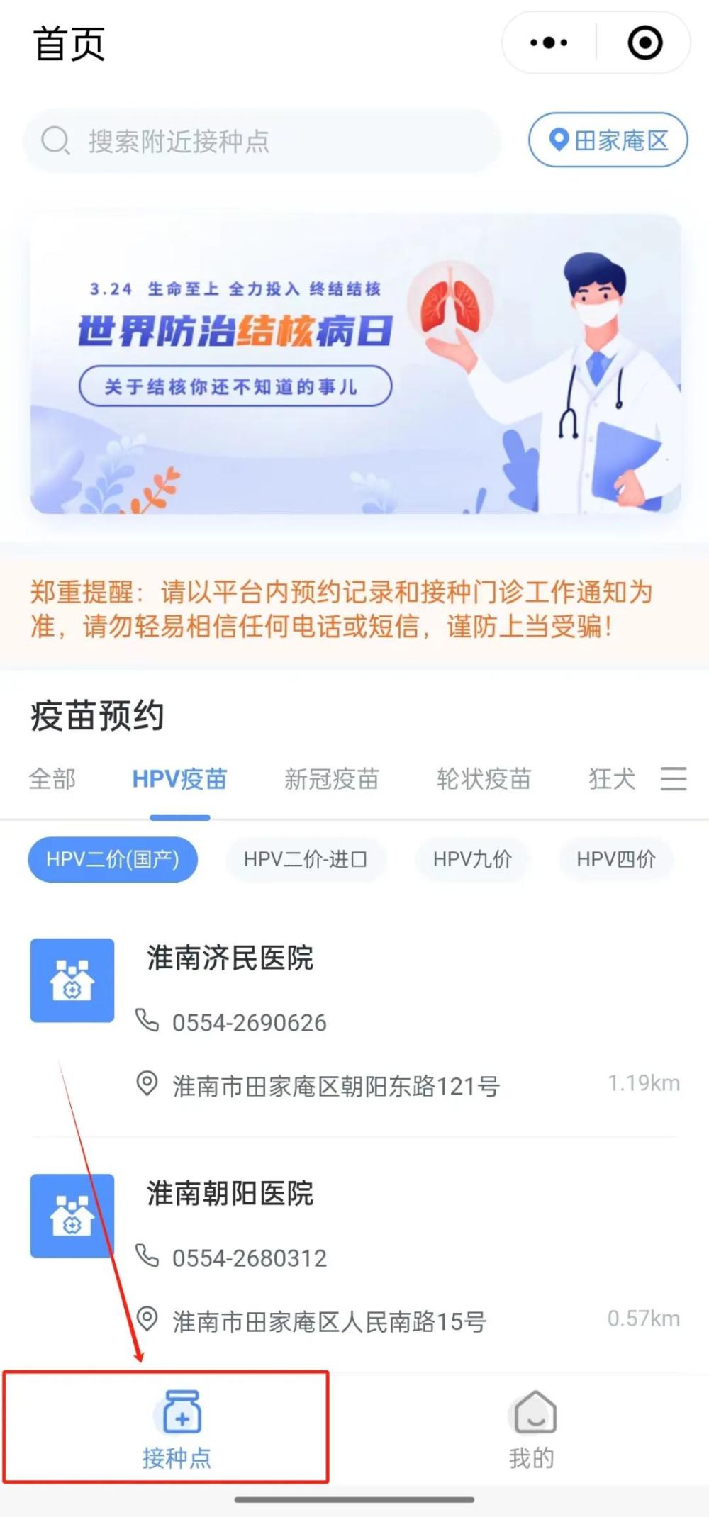 田家庵区HPV疫苗接种门诊一览表(本轮)