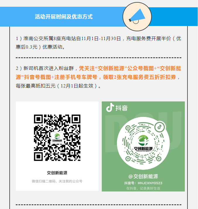 【交通运输领域】 淮南公交8座充电站全面向社会开放啦!