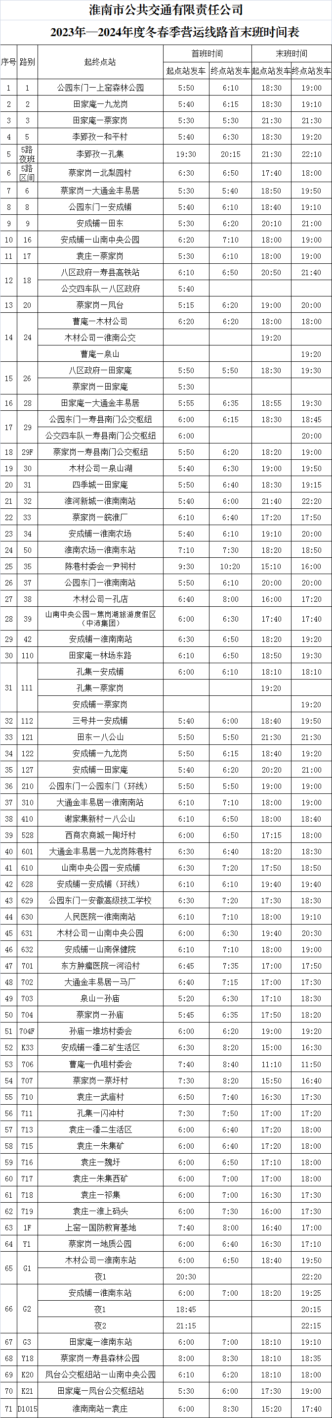【交通运输领域】2023年—2024年度冬春季营运线路首末班时间表