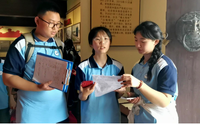 本次实践活动是我校和淮南师范学院联合研究的省级教育科研课题《课程思政下的高中语文革命传统校本课程开发与实践》的教学内容之一。今年4月份以来,课题主持人徐坤伟和崔尔胜带领课题团队以《风卷红旗如画》和《淮南红色旅游资源概览》两本书为素材,在课堂上给同学们讲述淮南早期共产党人事迹、介绍淮南红色教育场馆。目前课程的学习已接近尾声,同学们今天的任务是自己动手拍摄短视频,讲述淮南红色故事。为了完成这个任务,同学们前期已经做了大量的准备。