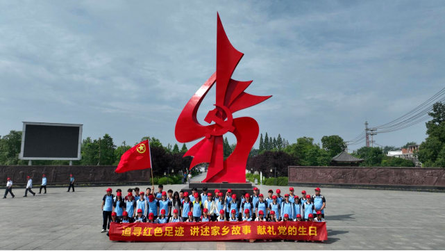 在安徽省第一面党旗纪念园,全体师生肃整衣冠怀着对早期共产党人的崇敬之情,表达了对党的生日的祝福,对传承红色血脉的决心。