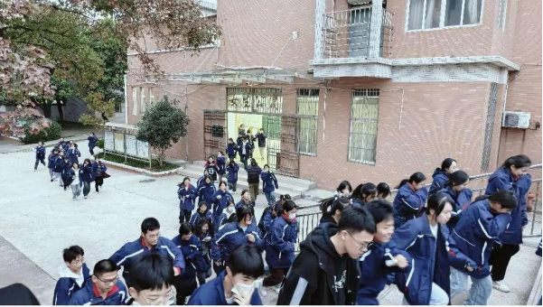 随着大楼警报响起,全体师生迅速进入紧急状态,宿舍老师立即到达指定岗位,引导学生快速疏散。同学们用湿毛巾捂住口鼻,弯腰低头快速前行,沿着预定的疏散路线有序撤离到安全区域,整个过程不超过3分钟。